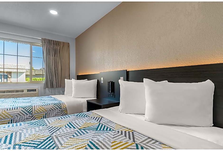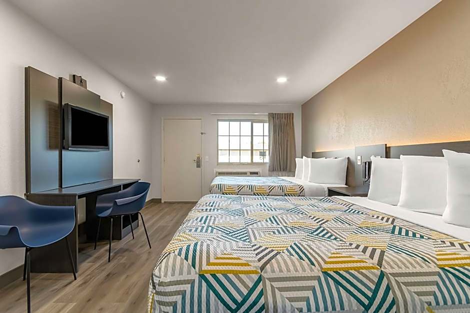 A flat-screen satellite TV is featured in this room. A microwave and small fridge are included.
